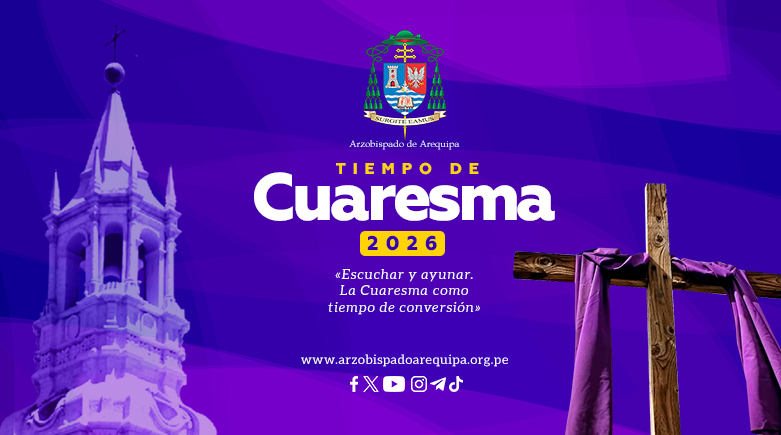 El Arzobispado de Arequipa, a través de su Oficina de Comunicaciones, ofrece a los fieles en su página web la posibilidad de acceder a diversos contenidos útiles como medio de preparación para este tiempo de conversión en el que se nos invita a ponernos en camino siguiendo a Jesús para acoger su misterio de salvación; entre ellos: el mensaje del Papa León XVI para la Cuaresma 2026, los mensajes semanales de nuestro Arzobispo, la Agenda Arquidiocesana de actividades, y otros recursos que podrán ser utilizados.