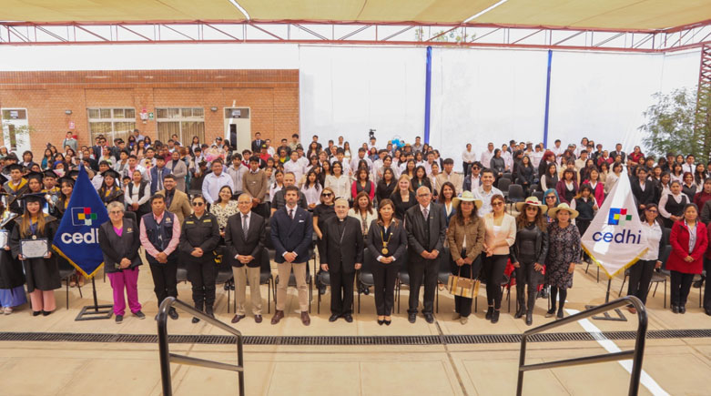 La ceremonia contó con la presencia de Mons. Javier Del Río, fundador de esta institución educativa, la Sra. Mirtha Ruelas Casillas, Alcaldesa distrital de Yura, el Lic. César Arriaga Pacheco, Director Ejecutivo de la Promotoría del CEDHI, el Mag. Manuel Zegarra Valdivia, Director General del CEDHI, el Sr. Fernando Palazuelo Barroso, promotor del Hotel Palacio de Godoy (España) en el que exalumnos del CEDHI hacen pasantías, además de representantes de varias empresas que colaboran con esta obra, docentes, estudiantes y público invitado.