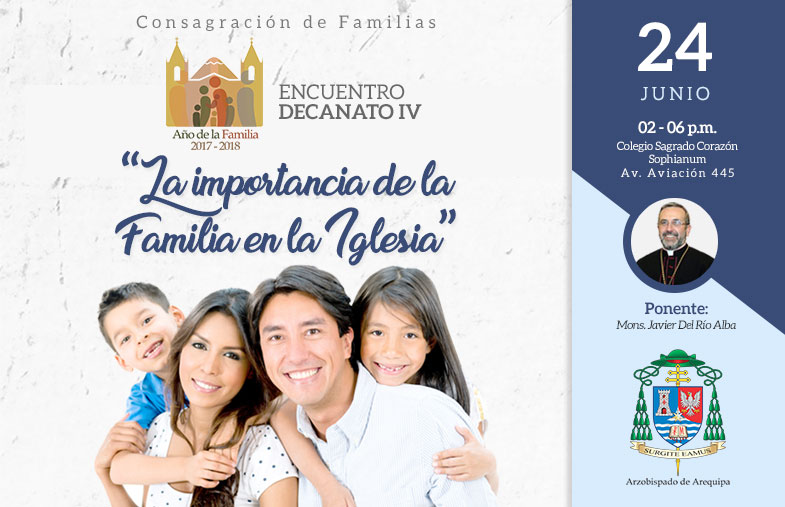 Mons. Javier Del Río Alba, Arzobispo de Arequipa acompañará la jornada y brindará una conferencia sobre: «El rol de la familia en la Iglesia». Recordemos que nuestra Arquidiócesis continúa viviendo el «Año de la Familia», el cual fue instaurado por el Prelado desde el año 2017, rescatando la importancia de la familia y la transmisión de la fe a los hijos, especialmente hoy en día en el que se pretenden implantar tantas ideologías y mentiras.