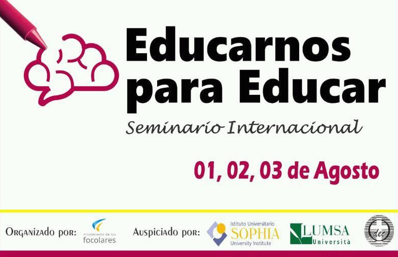 El Movimiento de los Focolares en cooperación con la Oficina Diocesana de Educación Católica - ODEC de Arequipa realizarán un Seminario Internacional para docentes, catequistas, padres de familia y agentes de pastoral que trabajen con niños y adolescentes en comunidades parroquiales y en los diferentes contextos sociales y culturales de nuestra sociedad. «Educarnos para educar» es el nombre del seminario que se efectuará del 01 al 03 de agosto, en el auditorio «Santo Toribio de Mogrovejo», ubicado en el pasaje de la Catedral - Cercado, de 4:45 a 8 p.m.
