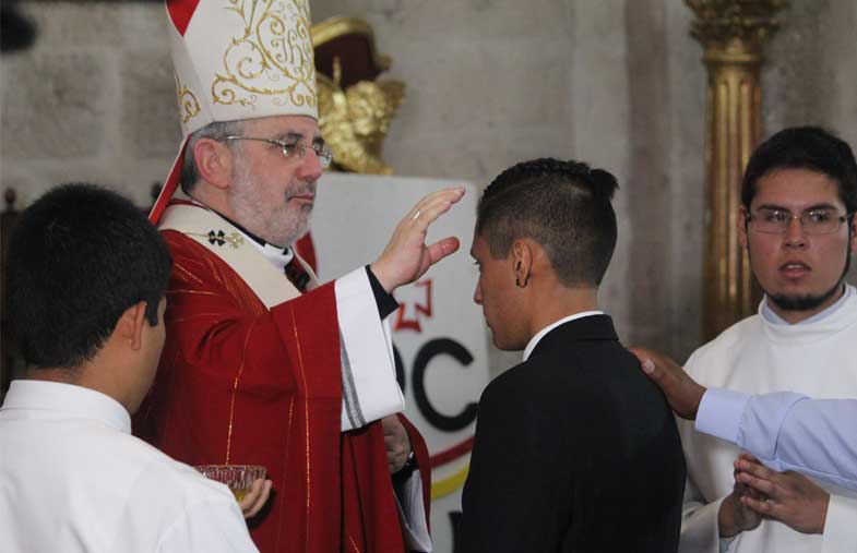 Como el pasado fin de semana, días en los que el Prelado confirmó a más de 350 jóvenes de la parroquia «Nuestra Señora de la Merced» en el Cercado, parroquia «Inmaculado Corazón de María» en Miraflores y la parroquia «Nuestra Señora de los Dolores» en Cerro Colorado, cuya celebración se realizó en la Basílica Catedral por ser la más numerosa. El fin de semana anterior a este, 70 alumnos del colegio Prescott y más de 140 jóvenes de diferentes instituciones educativas que se prepararon junto al Movimiento Avanzada Católica, también recibieron la señal de la cruz con el Crisma en la frente de manos de nuestro Pastor en la Catedral.