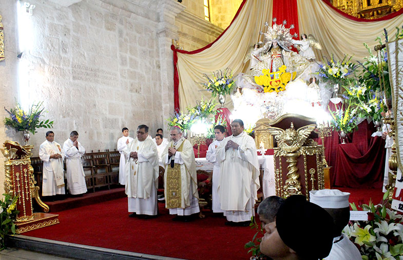 En el marco de las celebraciones del Año Jubilar por el Octavo Centenario de la Fundación de la Orden de la Bienaventurada Virgen María de La Merced (1218-2018), esta mañana, Mons. Javier Del Río Alba, Arzobispo de Arequipa presidió la Misa de fiesta en honor a «Nuestra Señora de La Merced», en la parroquia bajo su protección, ubicada en el Cercado de la ciudad.