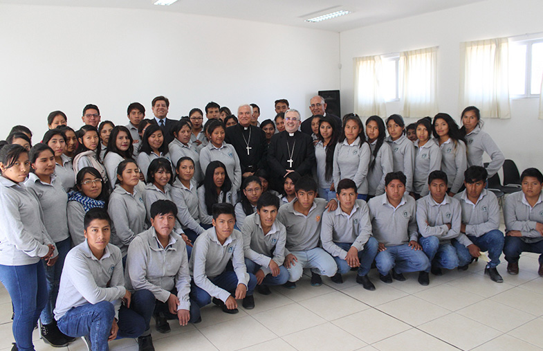 Durante el último día de su visita a nuestra Arquidiócesis, Mons. Nicola Girasoli, Nuncio Apostólico en el Perú, realizó una visita al Centro de Estudios y Desarrollo Humano Integral - CEDHI «Nueva Arequipa» que se encuentra en el Cono Norte de la ciudad, junto a Mons. Javier Del Río Alba, Arzobispo de Arequipa. En el lugar hizo un llamado a los jóvenes a formarse en valores, ya que es importante no solo capacitarse académicamente, dijo, sino también espiritualmente para ser buenos ciudadanos que aporten al país.