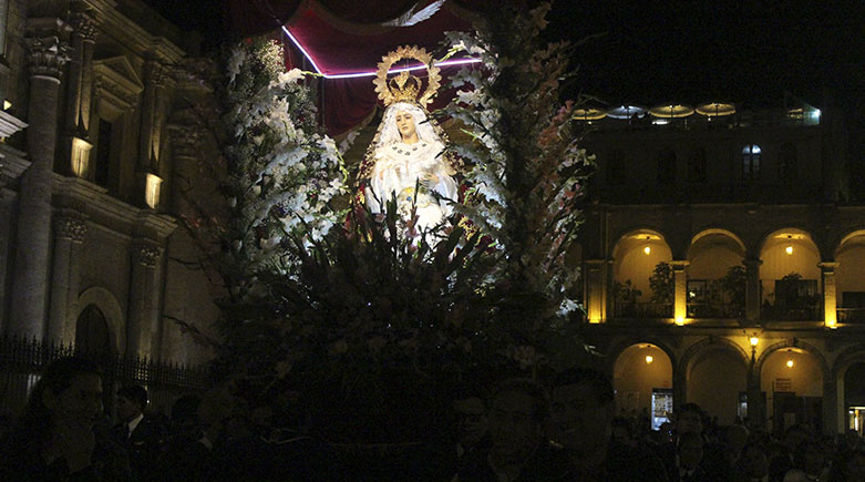 El domingo 15, la Iglesia recuerda a «Nuestra Señora de los Dolores» y nos invita a contemplar a nuestra Madre a los pies de la Cruz, participando en la Misa de fiesta que se realizará en la parroquia «Virgen de los Dolores» en Cerro Colorado, a las 10 a.m. y en la procesión por el perímetro de la plaza Las Américas a las 11 a.m. Mientras que en la parroquia «Nuestra Señora de Monserrat» - La Recoleta, la Misa de fiesta será el domingo a las 8 a.m., en el templo del Convento de «San Francisco» la Misa será a las 10:30 a.m., en el templo del convento de «Santo Domingo» en el Cercado, la Misa y el canto de la Salve Regina serán al mediodía y en el templo de la Compañía de Jesús, en el horario de Misa habitual a las 10 a.m., 12 m., 6 y 7 p.m.