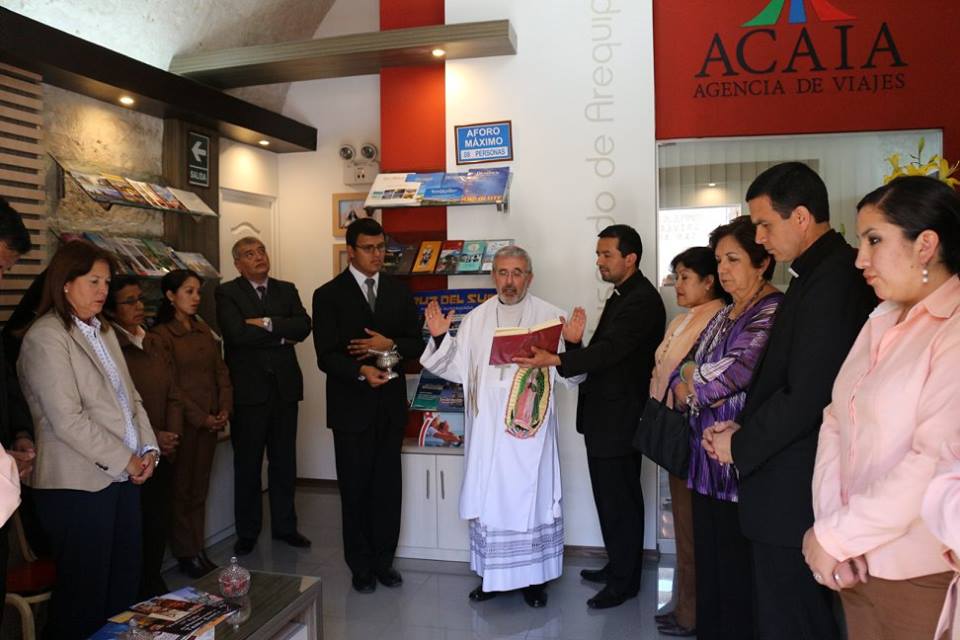 Las nuevas Instalaciones de la agencia de viajes de la Asociación Civil de Apoyo a la Iglesia Católica de Arequipa ACAIA fueron inauguradas este viernes 09 de octubre por Mons. Javier Del Rio Alba, Arzobispo Metropolitano de Arequipa destacando la labor que cumplen en especial a través del fomento de las distintas devociones organizando viajes a los diferentes santuarios como: Santuario de Nuestra Señora de Chapi, Santuario del Divino Niño en Colombia y el Santuario de Nuestra Señora de Guadalupe en México.