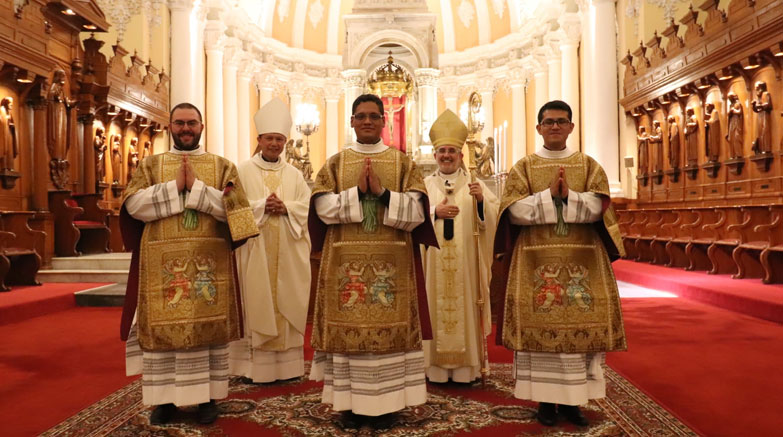 Los nuevos diáconos son Abraham Joel Arhuire de la Torre y Willy Scott Carpio Molina, formados en el Seminario «San Jerónimo», y Samuele Patat formado en el Seminario Misionero «Redemptoris Mater».