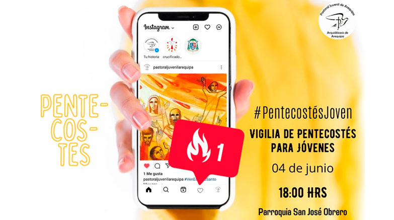 La Comisión Arquidiocesana de Pastoral Juvenil, está organizando una Vigilia de Pentecostés para jóvenes. La vigilia se realizará este sábado 4 de junio a las 6 p.m., en la parroquia “San José Obrero” en La Apacheta y las inscripciones están disponibles a través del formulario https://bit.ly/38EdkYn publicado en la página de Facebook: Pastoral Juvenil Arequipa o en las redes sociales del Arzobispado.