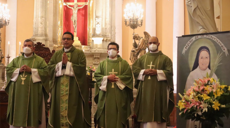 La Misa la presidió el P. Alberto Ríos Neyra, Vicario General, concelebrada por tres sacerdotes de la Congregación de Jesús y María, cuyo fundador, al igual que el de la Congregación de Nuestra Señora de la Caridad del Buen Pastor, a la que perteneció “Sor Aguchita”, es San Juan Eudes.