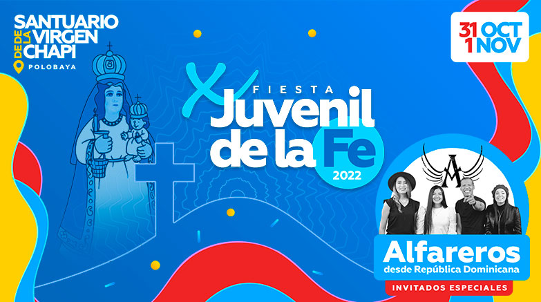 La tan esperada X Fiesta Juvenil de la Fe, que se realiza en el Santuario de la Virgen de Chapi, este año tendrá como invitados especiales al consagrado grupo “Alfareros” de República Dominicana. Miles de jóvenes llegarán hasta el complejo ubicado en el distrito de Polobaya, después de dos años en los que debido a la pandemia del COVID-19, no pudieron reunirse para vivir una noche diferente, de gozo evangélico y alegría pascual bajo la maternal protección de nuestra “Mamita”.
