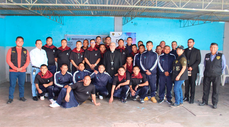Después de la celebración eucarística, acompañado por la Directora Regional del INPE Lic. Jenny Ramos Sosa y el Director del Penal Lic. Jhon Pinedo Ureta, Mons. Javier hizo un recorrido por la prisión, durante el cual visitó el Programa DeVida que promueve la rehabilitación de internos, casi todos jóvenes, que son víctimas de las drogas y otras adicciones. Los animó a perseverar en el programa y les anunció que ha nombrado un capellán específico para ellos, quien contará con la asistencia de un diácono para fortalecerlos en la dimensión espiritual. Los jóvenes reclusos expresaron su agradecimiento y ofrecieron un número artístico a los visitantes.