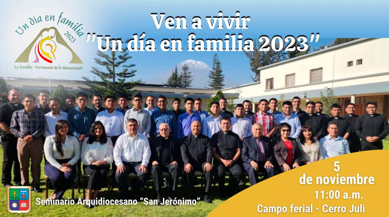 El Seminario Arquidiocesano «San Jerónimo» invita a participar y disfrutar de “Un Día en Familia”, en el festival que se realizará el próximo domingo 5 de noviembre en las instalaciones del Campo Ferial Cerro Juli, desde las 11 a.m., para recaudar fondos que contribuyan al sostenimiento del Seminario y la formación de los futuros sacerdotes.