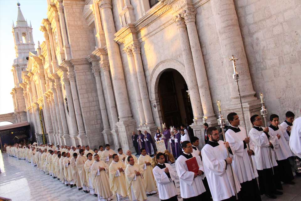 Finalizada la Misa, los sacerdotes en procesión llegaron hasta las puertas de la Basílica catedral de Arequipa, donde el representante del Papa Francisco, empujó las hojas de la misma para abrirla y de esta manera permanecerá abierta durante todo un año de 7:00 am a 7:00 pm. En sus palabras de agradecimiento el Nuncio expresó su alegría por ver en la Arquidiócesis de Arequipa el celo por defender la fe y la masiva participación de los fieles en los eventos que se convocan, como este que colmó la Plaza de Armas.