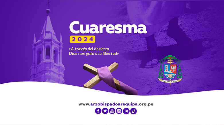 El Arzobispado de Arequipa, a través de su página web y redes sociales como Facebook, Telegram, Twitter, Instagram y TikTok brinda a los fieles la posibilidad de acceder a diversos contenidos útiles como medio de preparación para este tiempo de conversión en el que se nos invita a ponernos en camino siguiendo a Jesús para acoger su misterio de salvación; entre ellos: el mensaje del Papa Francisco para la Cuaresma 2024, los mensajes semanales de nuestro Arzobispo, la Agenda Arquidiocesana de actividades, oraciones y otros recursos que podrán ser utilizados.