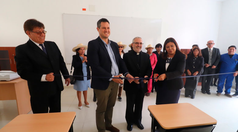 Personal administrativo y plana docente recibieron a Mons. Javier Del Río Alba, Arzobispo de Arequipa, para el acto inaugural que contó también con la participación del Gobernador Regional Sr. Rohel Sánchez Sánchez, la Alcaldesa de la Municipalidad Distrital de Yura Sra. Mirtha Ruelas Casillas, así como otras autoridades, benefactores y representantes de diversas instituciones locales.