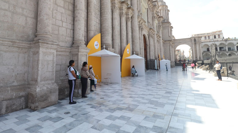 Con la finalidad de facilitar el acceso al sacramento de la Reconciliación y Penitencia, se ha instalado cuatro confesionarios en el atrio de la Catedral de Arequipa, en los cuales los fieles podrán acceder a ese sacramento de lunes a viernes de 10 a.m. a 1 p.m. y de 4 a 7 p.m. Estos confesionarios se suman a los habituales que están en el interior de la Catedral y serán atendidos por todos los sacerdotes de la Arquidiócesis, según turnos ya distribuidos a través de los decanatos.