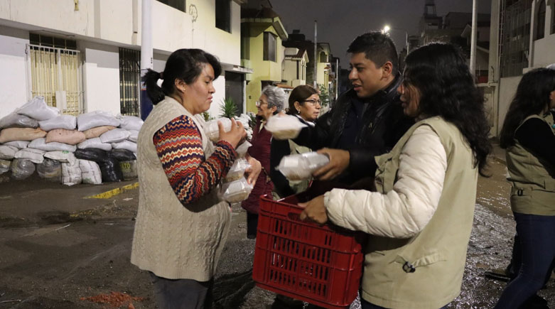 La emergencia continua y aún hay muchas familias que necesitan de nuestra ayuda; quienes deseen colaborar pueden donar alimentos no perecibles (arroz, azúcar, aceite, menestras, conservas), agua embotellada, leche y alimentos para niños y adultos mayores, frazadas, mantas, plástico para techos, ropa y calzado en buen estado, colchonetas, medicamentos (analgésicos, antipiréticos, botiquines) y productos de higiene personal (jabón, papel higiénico, pañales, toallas higiénicas, pasta dental, etc.).