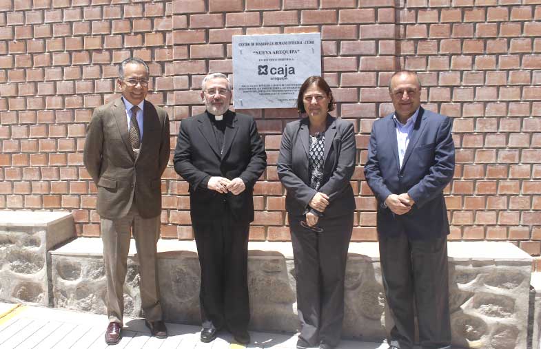 Un justo reconocimiento se realizó hoy por la mañana a Caja Arequipa, en mérito a su constante apoyo al Centro Educativo de Desarrollo Humano Integral (CEDHI) “Nueva Arequipa” que lleva adelante el Arzobispado de Arequipa, a través de Cáritas Diocesana, en Ciudad de Dios en el Cono Norte de la Ciudad. Mons. Javier Del Río Alba, Arzobispo de Arequipa, en sus palabras de agradecimiento reconoció el aporte realizado por la institución, ayudando a cumplir los sueños de los alumnos que se forman en el centro y que provienen de realidades donde escasea los recursos económicos y oportunidades de estudio, pero que demuestran tener mucha voluntad por salir adelante.
