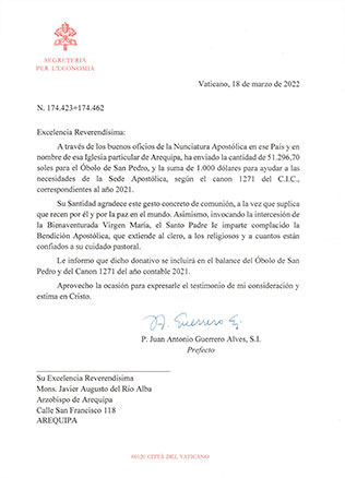 FRANCISCO AGRADECE COLABORACIÓN DE LA